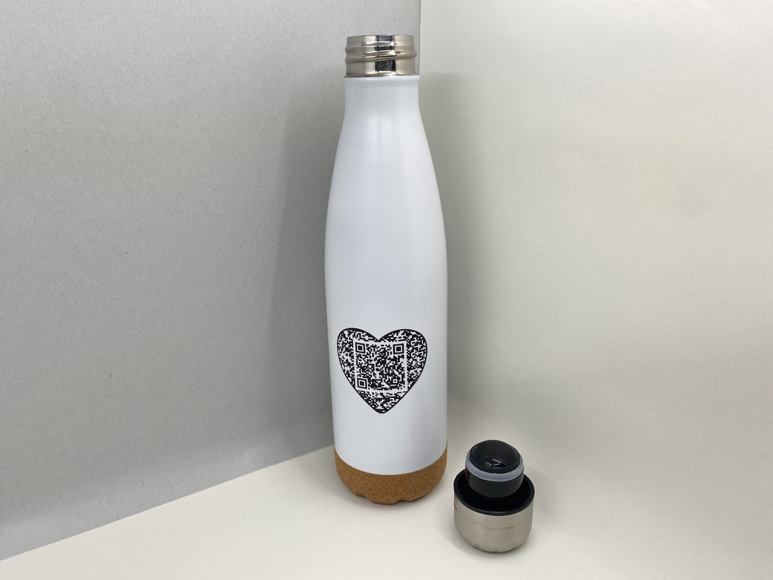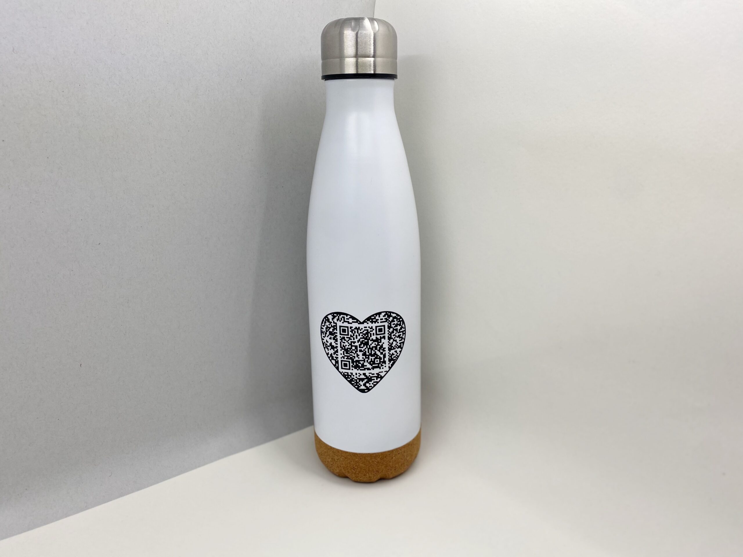 Doppelwandig isolierte und auslaufsichere Trinkflasche aus Edelstahl, 500 ml Fassungsvermögen, stylischer Korkboden sorgt für Rutschfestigkeit – Scan den QR-Code und erhalte jeden Tag eine inspirierende Botschaft direkt auf dein Handy.